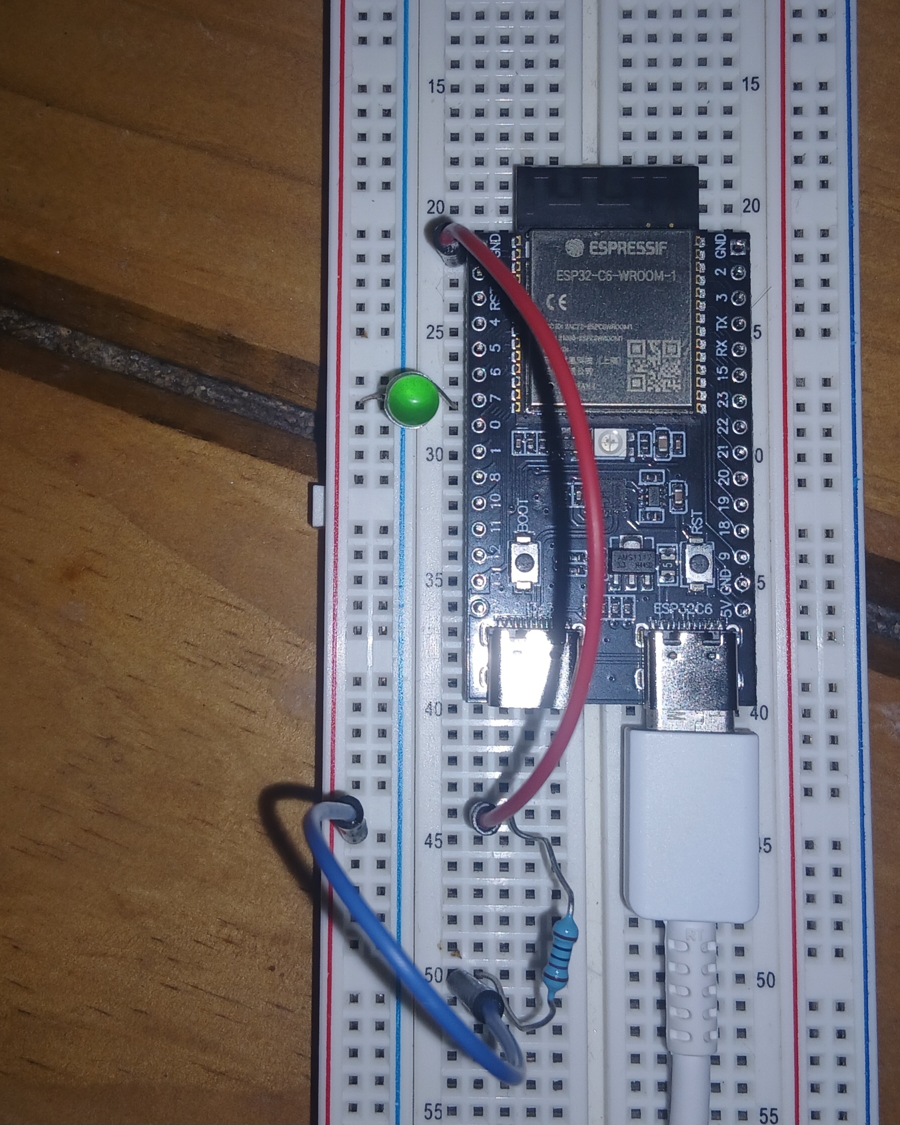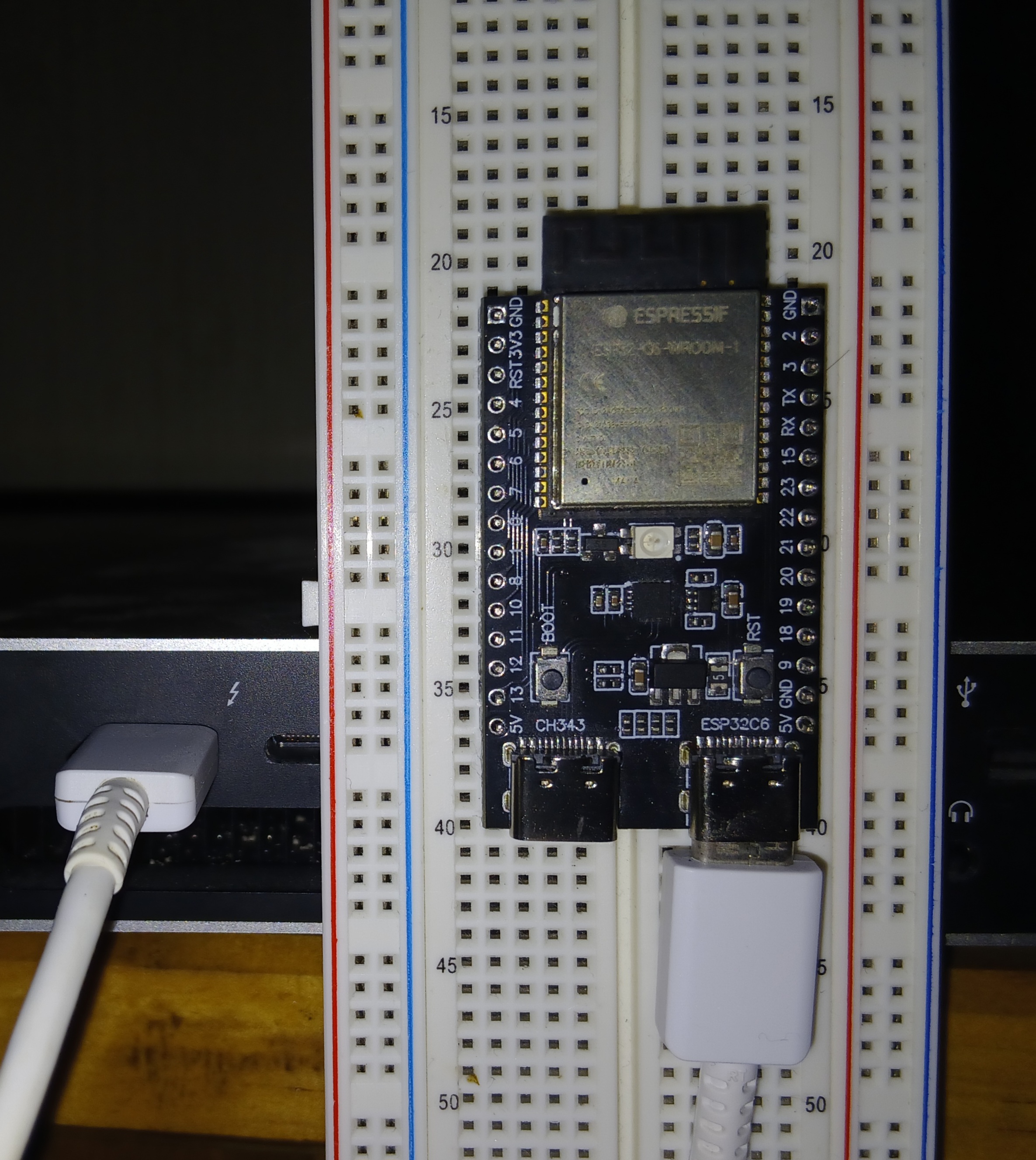 - Plug the other end to the board’s esp32c6-tagged USB port (or you may see a USB tag.)